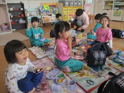 シートを敷いてお弁当や給食を食べるピクニックごっこもしましたよ!