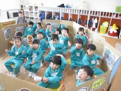 お部屋では、大型バスに乗りバスごっこを楽しんでいます
