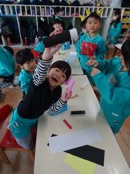 自由遊びの時間には、画用紙で恵方巻を作り、職員室の先生やひよこ組さんに配り行く姿も・・(*^^*)