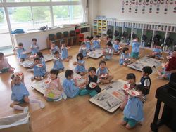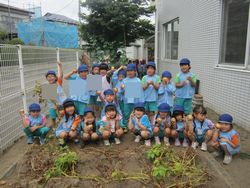 デイキャンプでは、年長組のみんなで大きな輪になって歌を歌ったり、カレー作りやスイカ割り、風鈴作りなど、盛りだくさんな1日となりましたが、始終笑顔が溢れ、どれも全力で楽しむ子ども達でした(*^^*)