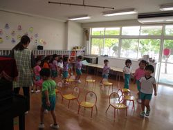 椅子の周りを歩きながら耳をよく澄まして・・・歌が止まったらすぐ椅子に座る!