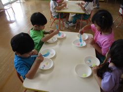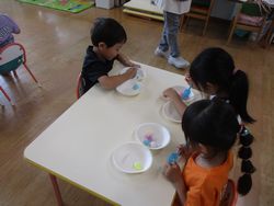 スプーンを持って、ポンポンをお皿に移す練習をみんな真剣に取り組んでいましたよ!