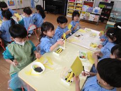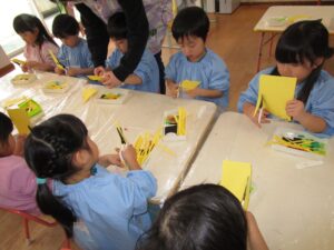 今までは先生と一緒に、数人ずつはさみを使っていましたが、だんだん扱い方に慣れてきたので、思い切って一斉に切ってみました!