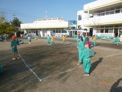 戸外ではドッチボールに夢中な子ども達!当てたり当てられたりのドキドキを楽しんでいます♪