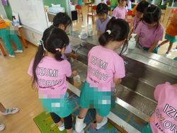 掃除が終わった後は汚れた雑巾を丁寧に洗ってくれました!おしぼりを絞る経験もしていたためか、「簡単に雑巾絞れたよ!」と自信満々に話してくれました(^▽^)たくさんピカピカにしてくれてありがとう(^^♪