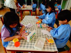 画用紙を切ったり、絵を描いたり、糊をつけたり…たくさんありましたが