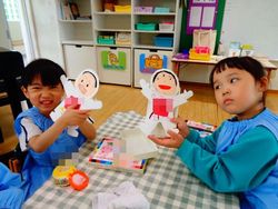 ↑   ↑ 完成した作品をお友達や先生に紹介してくれる子ども達(^▽^)♡
