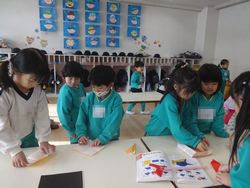 室内遊びでは折り紙に興味を持つ子が多くなってきました。アイロンをするのも上手になってきましたよ!折り紙の本を準備すると他のクラスの友達も遊びにきてくれて、一緒にジュースや風船、ハートなどを作って遊んでいます♪