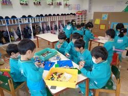 男の子達はレゴブロックに夢中です!パーツが足りない時でも、お友達と貸し借りが上手にできるようになりました。