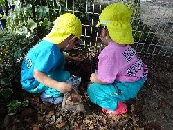園庭の落ち葉が多くなり、木の実も落ち始めていることを発見しました。