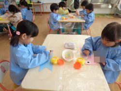 選ぶ子どもたち。糊の使い方のお話も真剣に聞く事がでました。
