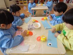 年少組では5月の壁面制作として「こいのぼり」を作りました。