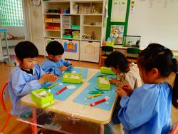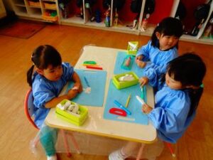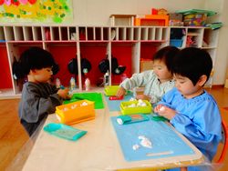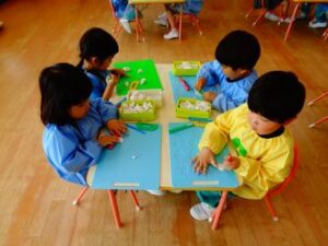 前回の粘土遊びでは粘土をこねる事を楽しんだ子ども達。