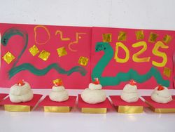また、小麦粉粘土の感触を楽しみ、そのあとは鏡餅にしましたよ♪十二支についても学びました!