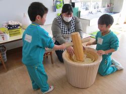 冬休みはぽけっとさんで干支の制作をしたり、餅つきごっこや凧あげなどを楽しみました。