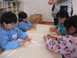 また、小麦粉粘土の感触を楽しみ、そのあとは鏡餅にしましたよ♪十二支についても学びました!