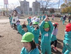 ひつじ組、きりん組、こあら組で集まり合同保育をしました。