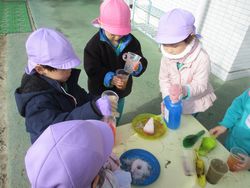 三連休後の幼稚園にはうっすら雪が残っており、寒さに負けずに雪遊び・氷遊びをしました(*^^*)
