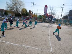外は寒くても元気いっぱいのきりん組さん。最近のお気に入りはドッチボール!