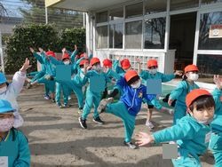 体操を何曲も続けて踊った後は、「あっつ~い!」という子ども達。