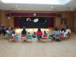 この日は人形劇サークル「ドリーム」さんに来ていただき、おおきなかぶの人形劇やエプロンシアターを演じていただきました。