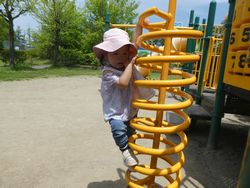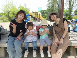 幼稚園で集まりを行い、幼稚園の近くにある松陵公園へママと元気に歩いて向かいました。