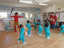 赤鬼が怖くて部屋の隅や先生に隠れたりする子もいましたが、遠くから頑張って投げる姿も見られました♪