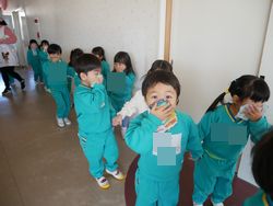 これまでの訓練の経験から、煙を吸わないようにはんかちや袖で口をおさえることも上手にできるようになりました。