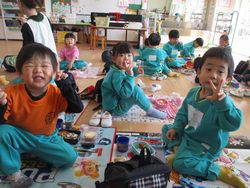 シートを敷いてお弁当や給食を食べるピクニックごっこもしましたよ!