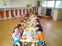 春雨遊びをした日から給食に春雨が出ると「今日春雨入ってる!」「これは食べられる春雨だね!」と喜んでいます♡みんなで食べると苦手な食べ物も不思議と頑張って食べられるうさぎ組さん。りす組さんと一緒に食べた日は「ぴかりん」の子がたくさんいました!