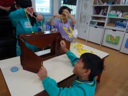 劇で使う大道具も先生と一緒に作りながら楽しんで練習に取り組んでいます♬