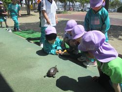 しか組のかめかめとは、もうすっかりお友達!かめかめがお散歩をしているところをじーっと見ていました(^O^)