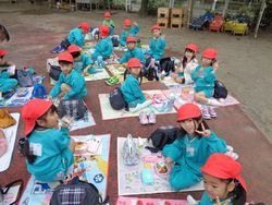 お家の方が作ってくれたお弁当を、とっても嬉しそうに見せ合って、にこにこしながら食べていました!