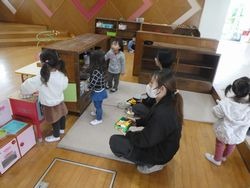 今回はお休みのお子さんも多く、6名での活動となりましたが、ホールの中を元気いっぱい動いて遊びました。