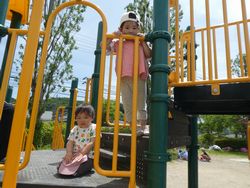幼稚園で集まりを行い、幼稚園の近くにある松陵公園へママと元気に歩いて向かいました。